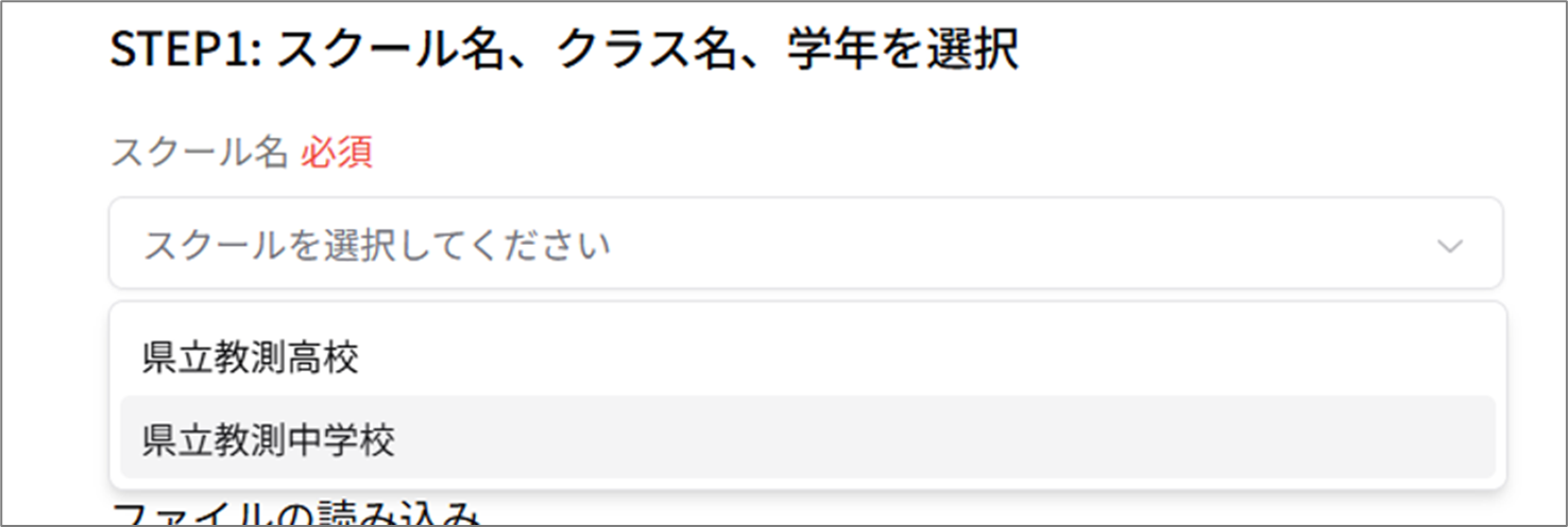 ③ 登録するスクール名を選択(STEP1)