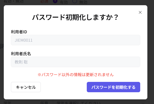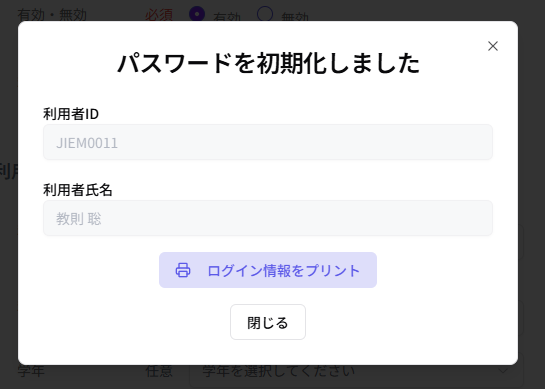 ④ パスワードが初期化されましたので、利用者へログイン情報を共有する必要があります。