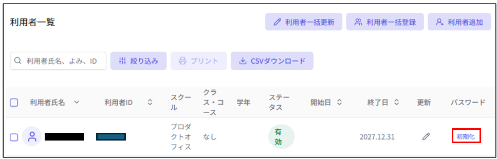 ② 利⽤者⼀覧画⾯が表⽰されます。