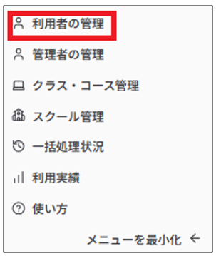 ① 画⾯左下メニュー内の「利⽤者の管理」を押下