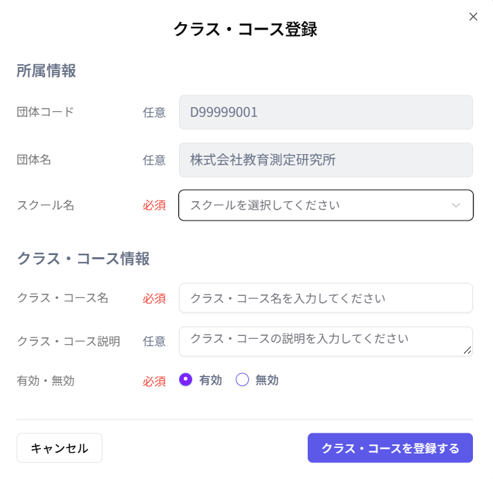 ④すべて入力したら、「クラス・コースを登録する」 を押下