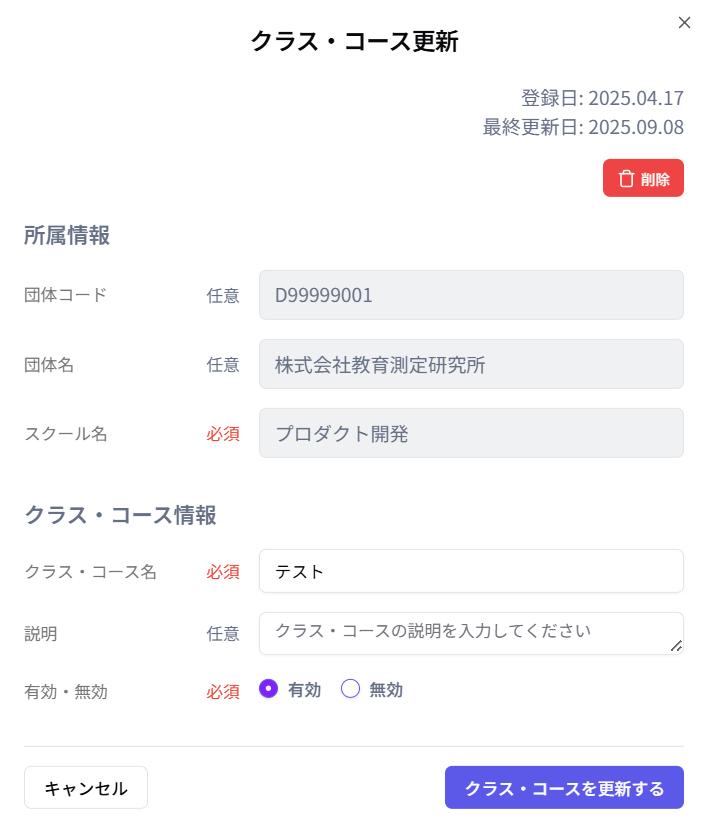 クラス・コースの情報を変更するにはどうしたらいいですか?